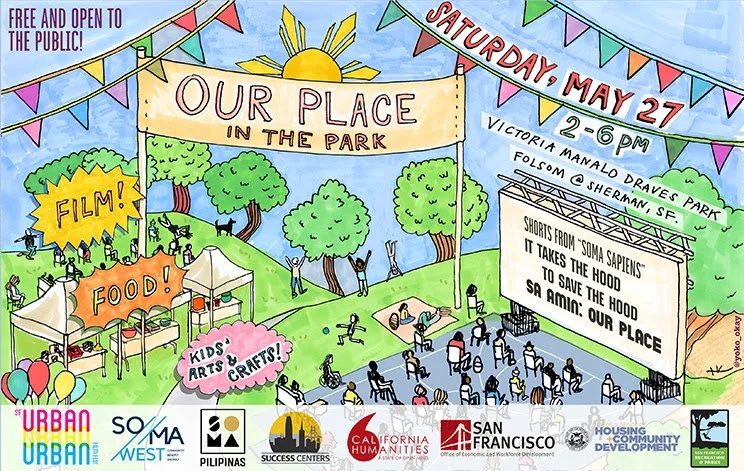 This mini-fair is produced in collaboration between SF Urban Film Fest, SOMA West CBD, [people.power.media], SOMA Pilipinas Cultural Heritage District, and Kultivate Labs, and generously supported by the SOMA Community Collaborative, California Humanities, and City of San Francisco Office of Economic and Workforce Development. Special thanks to the City and County of San Francisco’s Department of Recreation and Parks for their support.