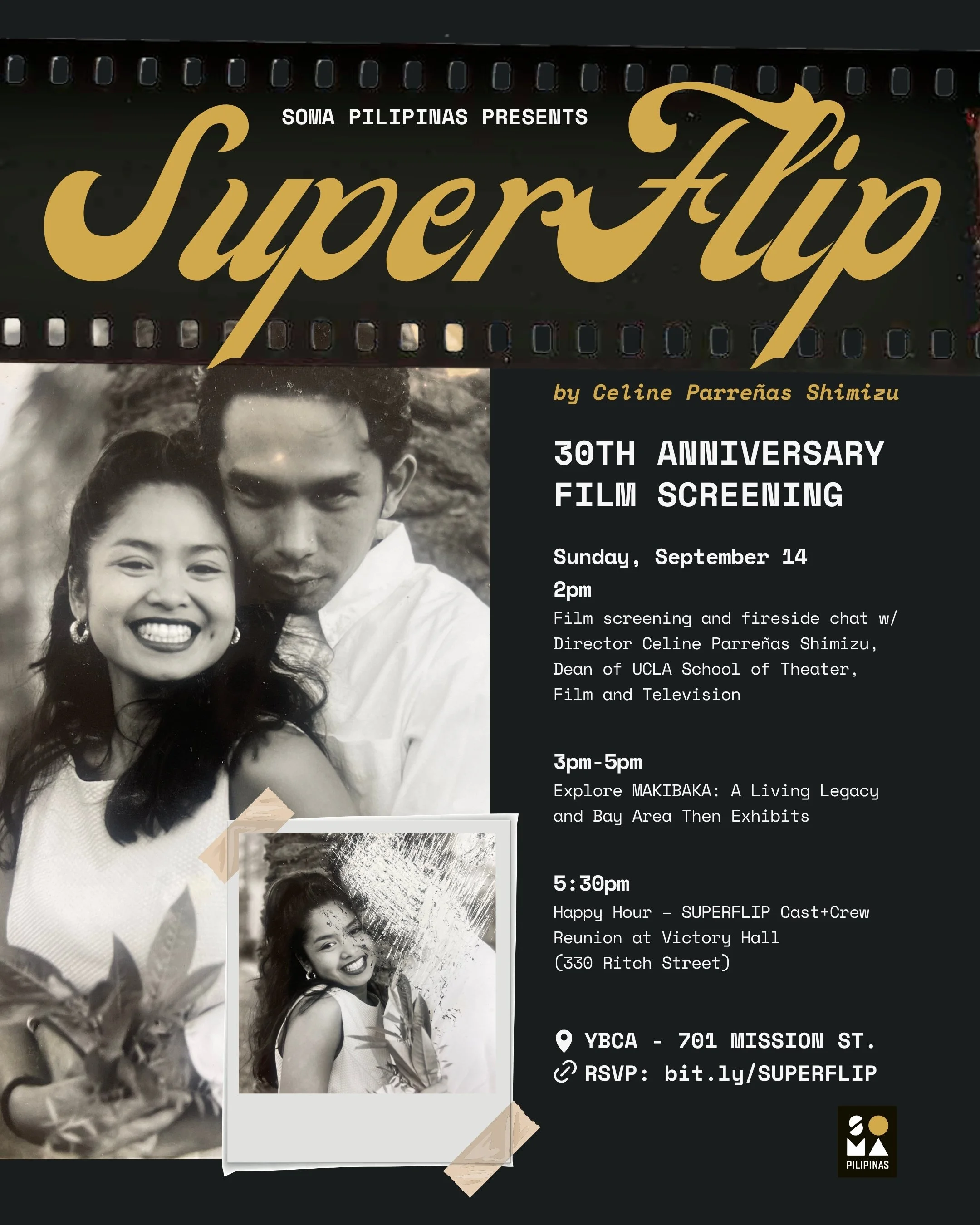 SUPERFLIP is a monumental short film by Celine Parreñas Shimizu filmed in the summer of 1995. The 30-minute film explores the life, love and labor of a Filipino immigrant couple and was shot in iconic SOMA locations such as the original Carmen’s Restaurant, Blanche’s Garden, Rigo’s Inner City / Home mural and 330 Ritch / Victory Hall.